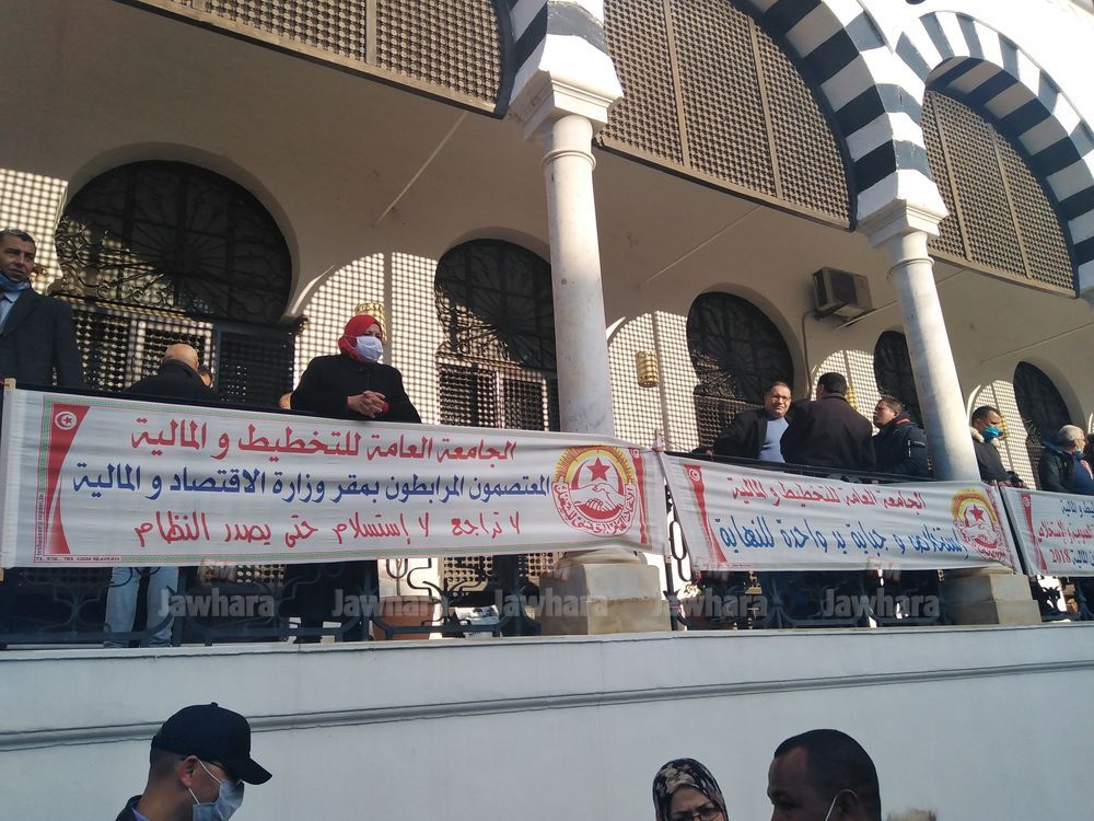 نفذ أعوان الجباية والمحاسبة العمومية والإستخلاص صباح اليوم الاثنين تجمعا أمام مقر وزارة الاقتصاد والمالية ودعم الاستثمار، في إطار يوم غضب دعت إليه الجامعة العامة للتخطيط والمالية وحضره منظوروها من مختلف الجهات للمطالبة "بحقوقهم المشروعة وعلى رأسها النظام الأساسي الخاص بأعوان الهيئة العامة للجباية والمحاسبة العمومية والاستخلاص".