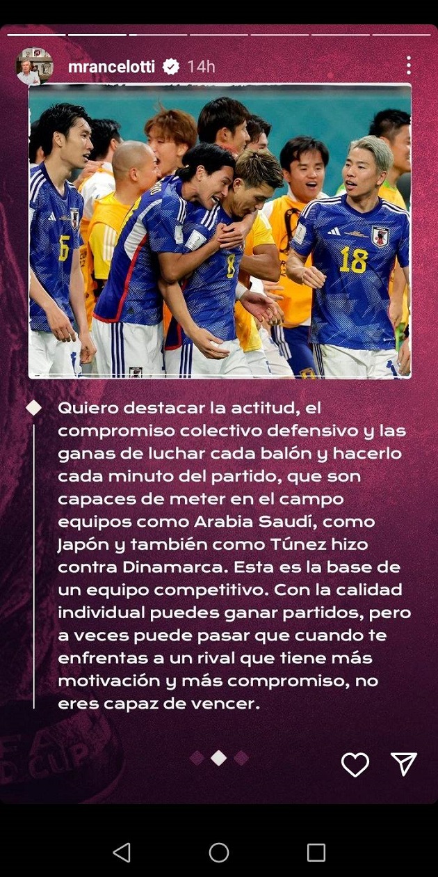 أشاد الإيطالي كارلو انشيلوتي، مدرب ريال مدريد الاسباني، بأداء عدد من المنتخبات المشاركة في كأس العالم المقامة في قطر، ومن بينهم المنتخب التونسي.