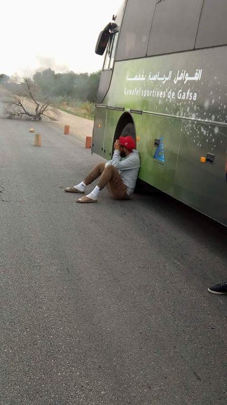 إحتجاز حافلة قوافل قفصة من قبل معتصمي بئر الحفي