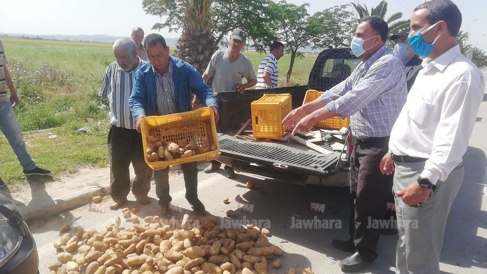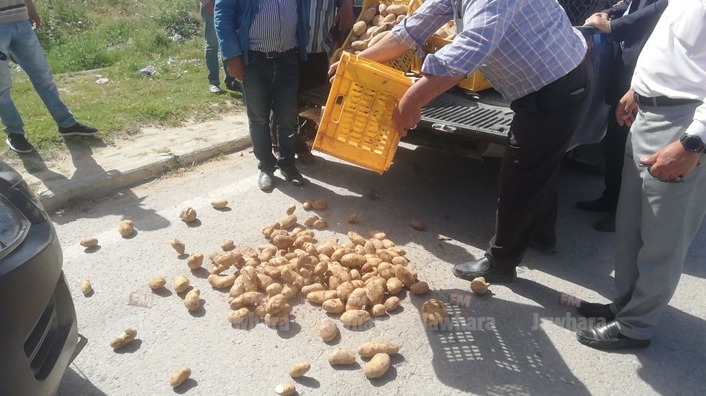 إلقاء كميات منها على الطريق في جندوبة : وقفة احتجاجية للمطالبة بتوفير مسالك ترويج البطاطا (صور)