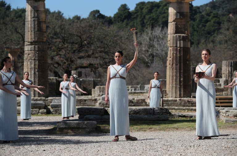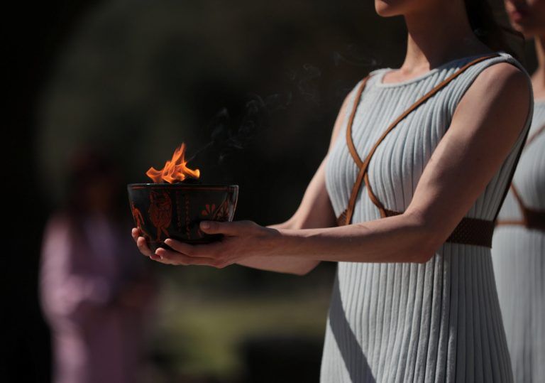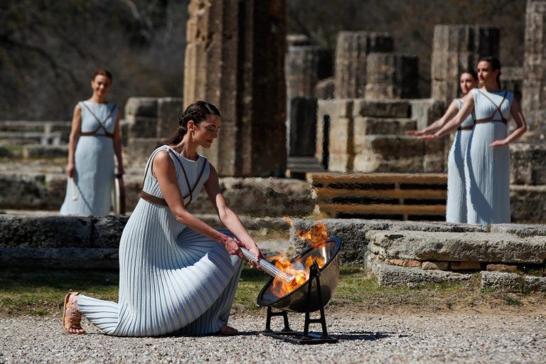 أوقدت شعلة أولمبياد طوكيو 2020 في اليونان على غير العادة خلال حفل خالٍ من الجماهير بسبب التخوف من تفشي فيروس كورونا.