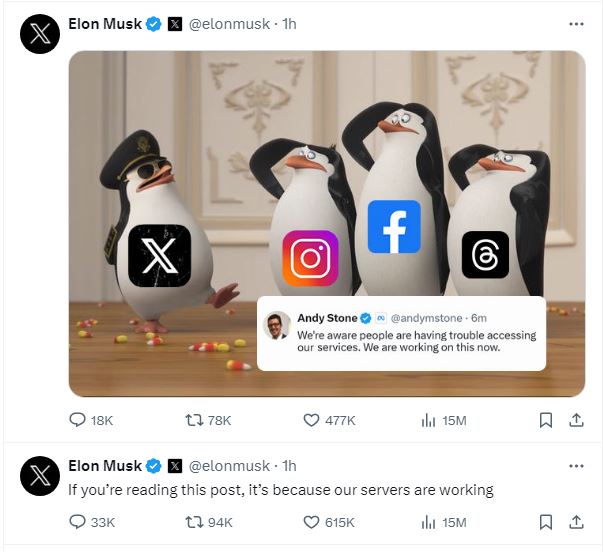 وكتب ماسك على حسابه في منصة "إكس": "إذا كنت تقرأ هذا المنشور، فذلك لأن خوادمنا تعمل".