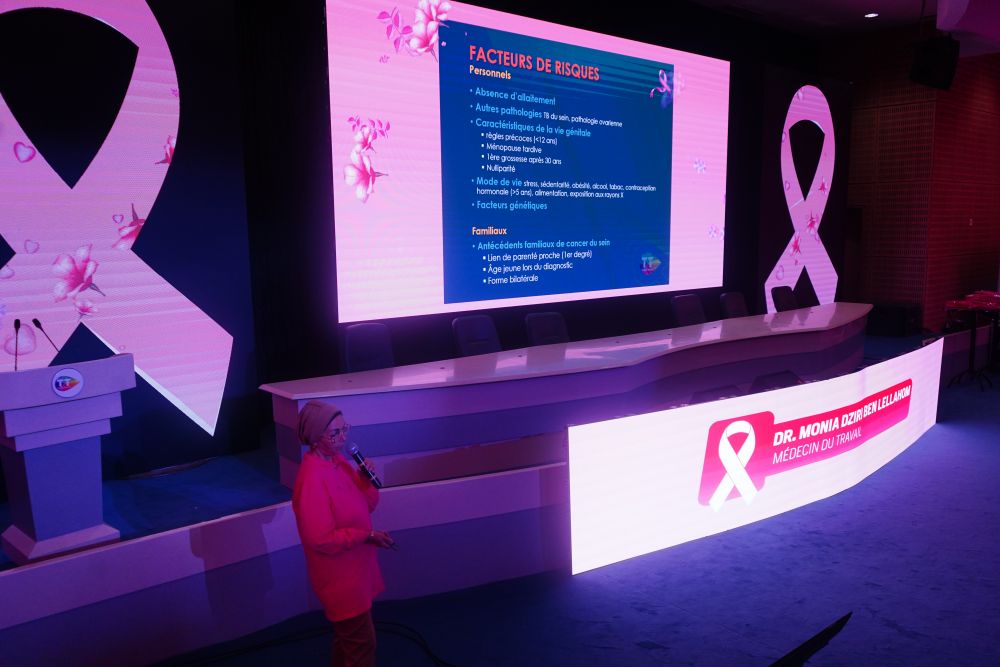 وقد أكدت الدكتورة بن للاهم على أهمية طب الشغل في هذا المجال صلب اتصالات تونس، والذي يمكّن جميع الموظفات من فحص سنوي مجاني (تصوير الثدي الشعاعي، تصوير بالموجات فوق الصوتية، إلخ). ...