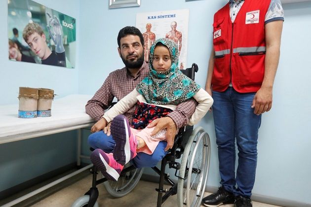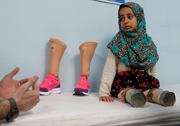 استعملت عُلَبَ التُنّ الفارغة بدل ساقيْها المبتورتيْن.. تعرّف على قصّة الطفلة السورية 'مايا مرعي'