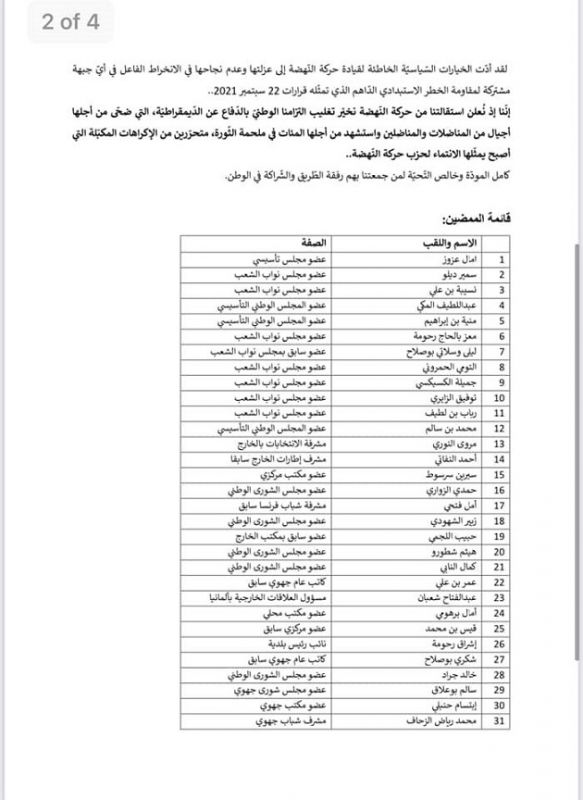 أعلن أكثر من مائة قيادي في حركة النهضة، بينهم نواب في البرلمان المجمد وأعضاء في المجلس التأسيسي وأعضاء في مجلس الشورى إضافة إلى عدد من المسؤولين الجهويين عن استقالة جماعية من الحركة.