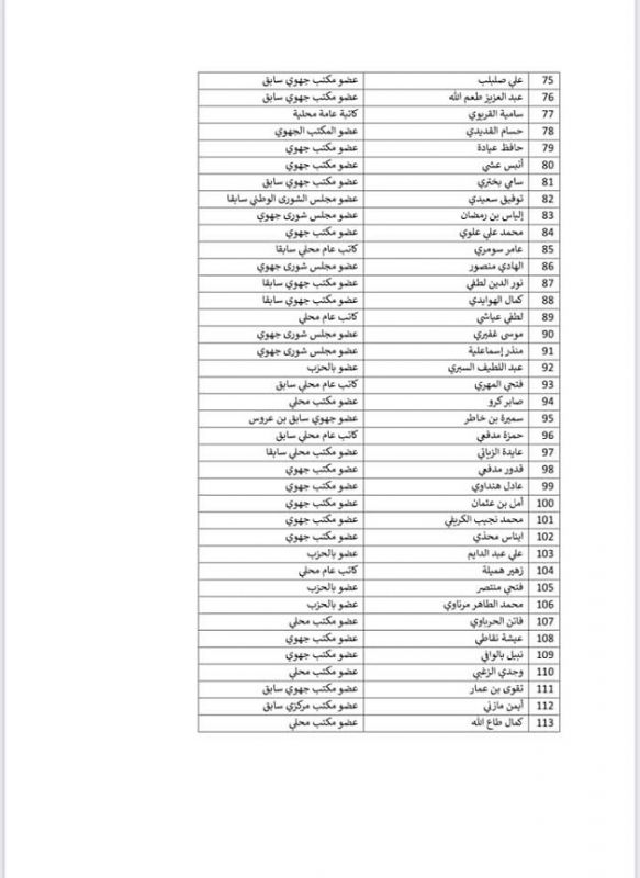 ومن بين المستقيلين عبد اللطيف المكي، وسمير ديلو ومحمد بن سالم، وزبير الشهودي، وجميلة الكسيكسي.