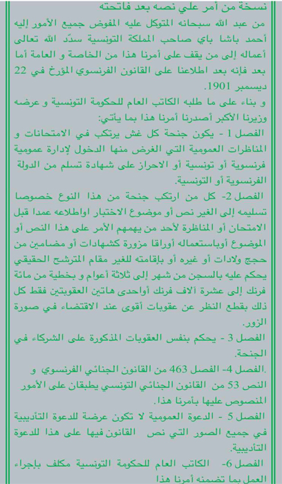 وأفاد في مداخلة هاتفية مع صباح الورد على الجوهرة اف ام اليوم ، بأن هذا القانون يستند الى أمر عليّ صدر  سنة 1941، واقر عقوبة سجنية تصل  إلى 3 سنوات، وفق توضيح بن جحا.
