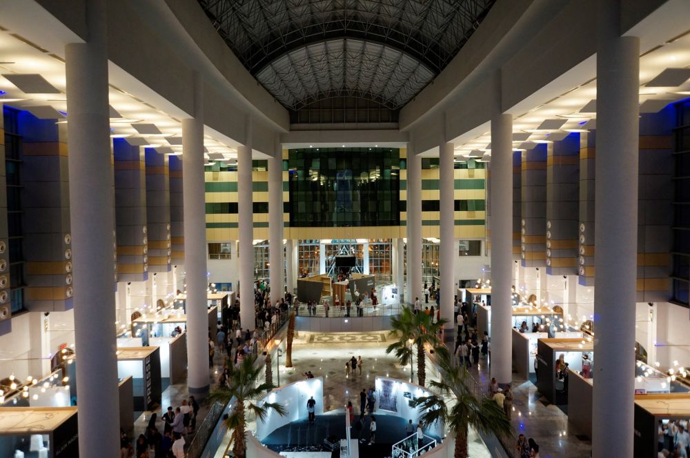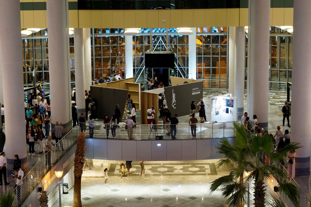 تم استثمار جميع مساحات مدينة الثقافة من البهو السفلي أين عرضت إنتاجات المبدعين الشبان بجناح خاص بهم، إلى البهو الرئيسي للمدينة أين امتدت أجنحة كثيرة من بينها جناح وزارة الشؤون الثقافية التي تكرم ثلاثة من أهم الفنانين في تونس: "رفيق الكامل"، "الهادي التركي" و"نجا المهداوي" الذي كان هناك سعيدا بالدورة التأسيسية لأيام قرطاج للفن المعاصر وقال في هذا الإطار "منذ زمن ونحن نطالب الهياكل الثقافية بإنشاء فضاء يجمع الفنانين التشكيليين واليوم تحقق هذا المطلب / الحلم الذي يكرس اللامركزية الثقافية بانطلاقه من الجهات نحو العاصمة"
