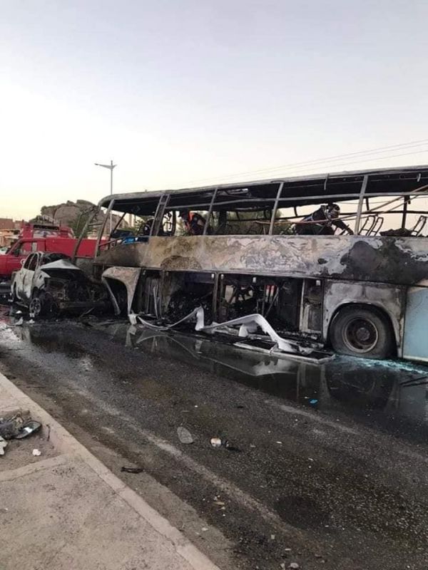 ووقع الحادث بين حافلة لنقل المسافرين وشاحنة خفيفة معبأة بالوقود.
