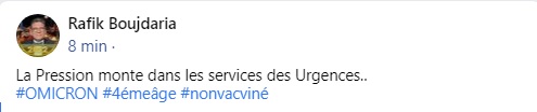 قال الدكتور رفيق بوجدارية، رئيس قسم الاستعجالي بمستشفى عبد الرحمان مامي، إن الضغط في تصاعد على أقسام الاستعجالي بسبب المتحور الجديد "أوميكرون".