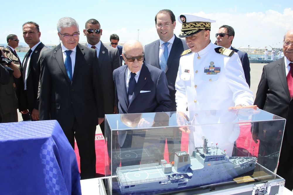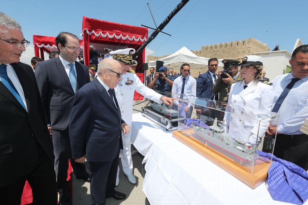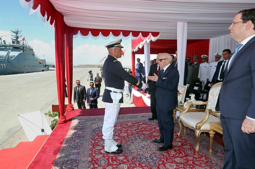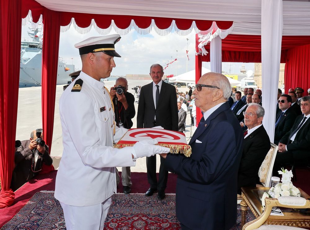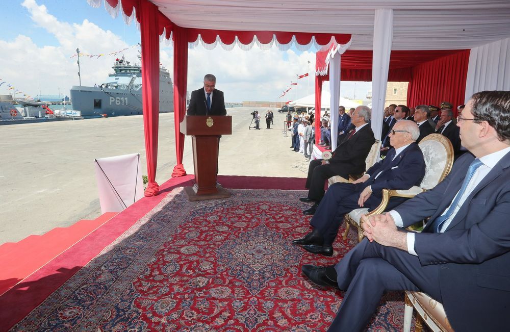 انتظم اليوم الإثنين، في الميناء التجاري بحلق الوادي، مهرجان عسكري أشرف عليه رئيس الجمهورية والقائد الأعلى لقوات المسلحة، الباجي قايد السبسي، تم خلاله رفع العلم على متن خافرة أعالي البحار "سيفاكس611" والجوالة "كركوان211"، اللتان ستدخلان حيز الاستغلال وذلك بمناسبة الذكرى 62 لانبعاث الجيش الوطني والذكرى الستين لبعث جيش البحر.