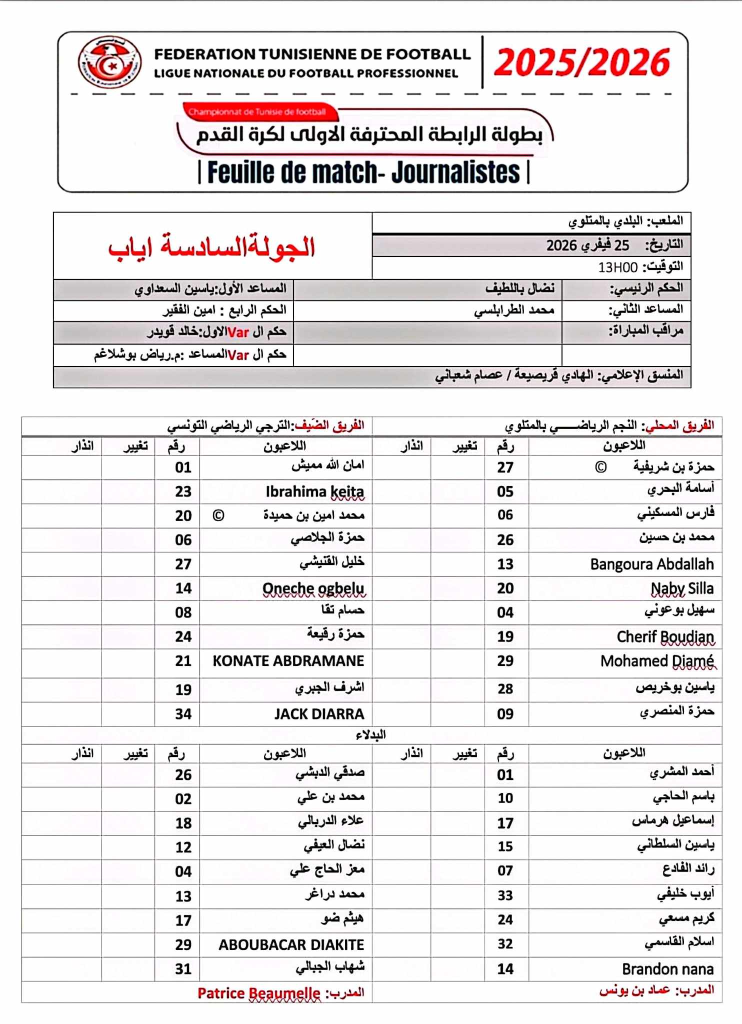 الرابطة الأولى: التشكيلة الأساسية لنجم المتلوي و الترجي الرياضي