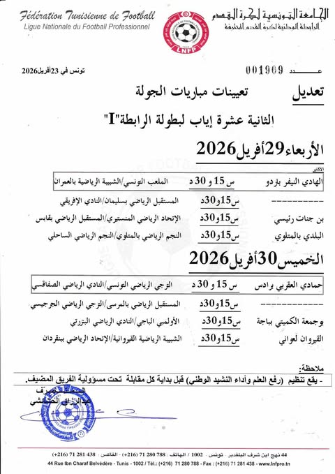 الرابطة الأولى: برنامج مباريات الجولة 12 اياب