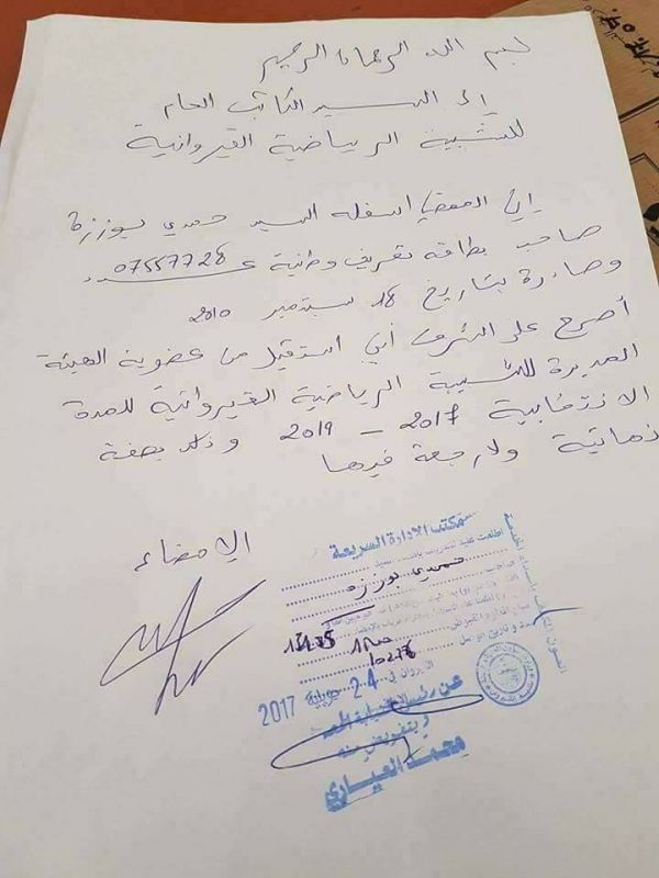 الشبيبة القيروانية : إستقالة 5 أعضاء من الهيئة(وثائق)