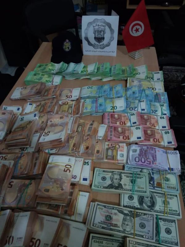 وبوصول الدورية إلى منطقة العكاريت، لاحظ الأعوان وجود السيارة المشبوهة رابضة في مدخل المدينة فيما تحصن سائقها بالفرار، وقد تم تفتيشها والعثور في صندوقها الخلفي على كيس بلاستيكي يحتوي مبلغا من الأوراق النقدية من العملة الأجنبية متمثلا في 367500 أورو و68200 دولار وصفيحتين من الذهب تزنان 250غراما.
