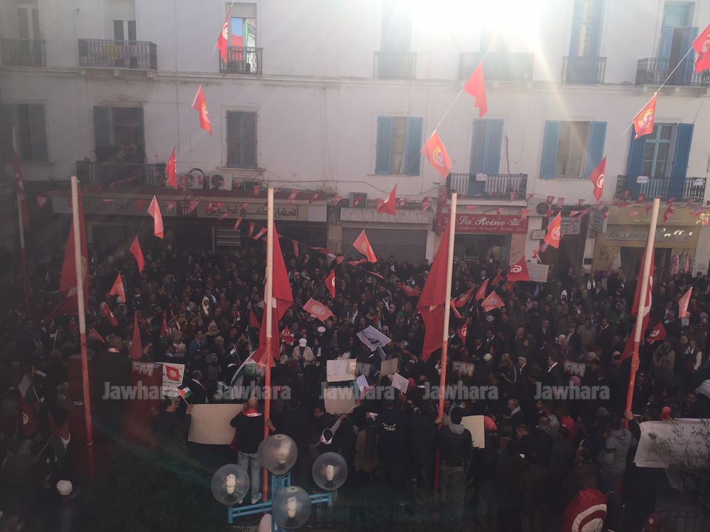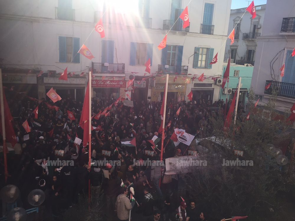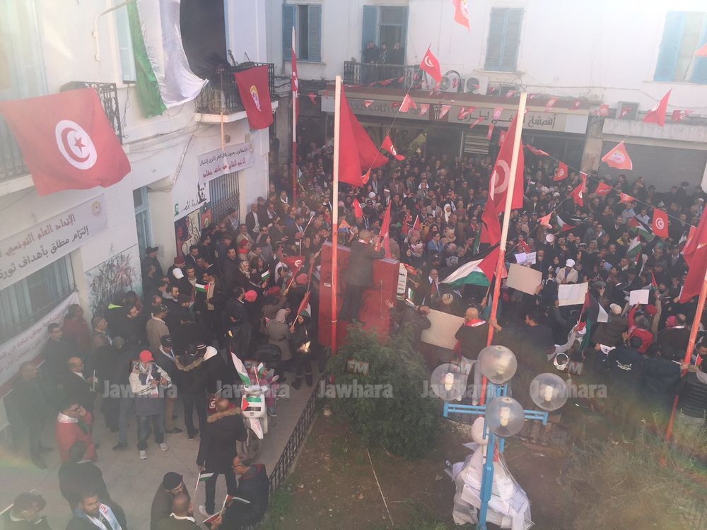 نظم اليوم الاتحاد العام التونسي للشغل، مسيرة وطنية انطلاقا من بطحاء محمد علي في اتجاه شارع محمد الخامس بالعاصمة، تنديدا بقرار الرئيس الأمريكي دونالد ترامب الاعتراف بالقدس المحتلة عاصمة للكيان الصهيوني.