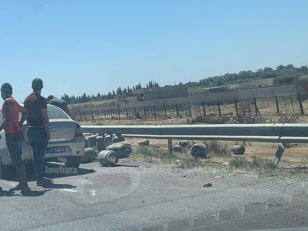 الطريق السيارة سوسة تونس : اصطدام بين شاحنة محملة بقوارير الغاز و سيارة
