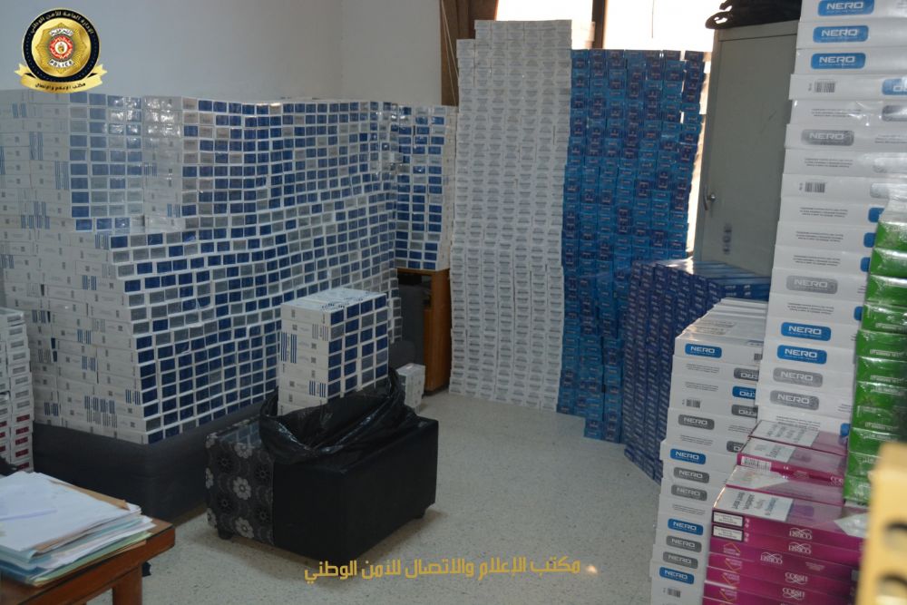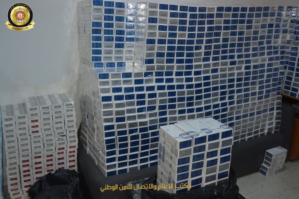 كما تمّ حجز سيارتين محملتين بكميات مختلفة من السجائر المهربة وحجز إجمالا عدد 47390 علبة سجائر وعدد 800 كلغ من الجيراك مهربة من إحدى البلدان المجاورة، إضافة الى ضبط 05 أشخاص داخل المستودع.