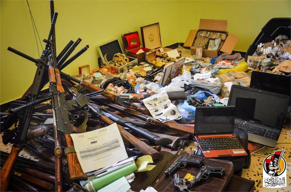 وتم العثور خلال هذه العملية وبالإضافة إلى الأموال التونسية على أسلحة وذخائر حربية وكمبيوترات محمولة وبطاقات شحن ومجوهرات وأموال ليبية وغيرها من المحجوزات، بحسب ما نشره المركز الإعلامي لعملية البنيان المرصوص على الفيسبوك .