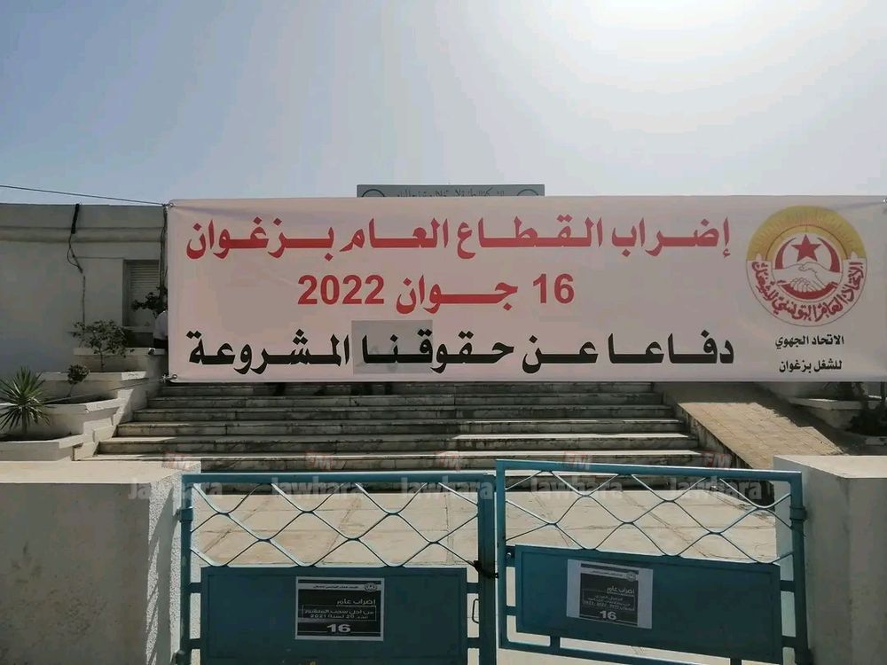أكد الكاتب العام للاتحاد الجهوي للشغل بزغوان حمادي النحالي أن نجاح الإضراب العام بالمؤسسات العمومية بزغوان اليوم بلغ نسبة مرتفعة بأغلب المؤسسات المعنية بالإضراب.