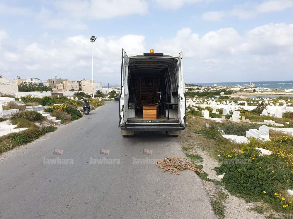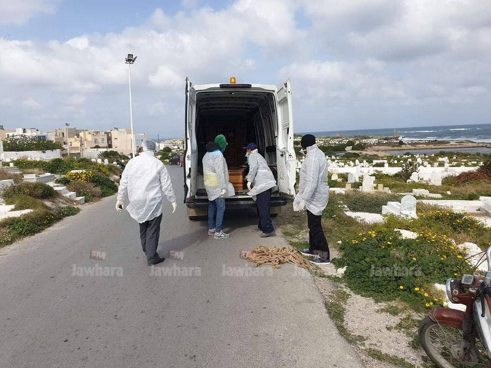تم ظهر اليوم الجمعة 20 مارس 2020، دفن المرأة المتوفاة أول أمس بفيروس كورونا بمقبرة برج الرأس بولاية المهدية، بحضور فرد من عائلتها، بعد أن تمّ تشييع جثمانها بواسطة سيارة تابعة لبلدية سوسة.
