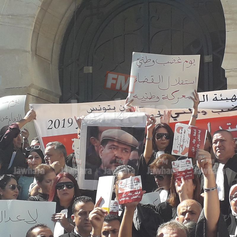 نفّذ اليوم المحامون يوم غضب وطني وذلك على خلفيّة قرار إحالة 6 محامين من أعضاء هيئة الدفاع عن الشهيدين شكري بلعيد ومحمّد البراهمي على التحقيق.