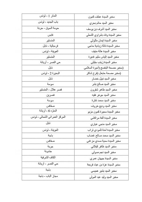 وفي مايلي قائمة المخابر المرخص لها :
