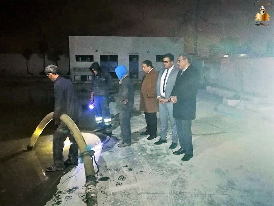 المدرسة الابتدائية رواد1: وزير التربية يشارك شخصيا في شفط مياه الصرف الصحي من ساحة المدرسة (صور)