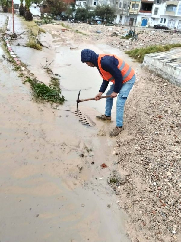 تواصل الإدارة الجهوية للتجهيز والإسكان بالمنستير، إزالة الأوساخ و الأتربة على مستوى بالوعات مياه الأمطار بالطرقات الجهوية رقم 95 بالنقطة الكيلومترية 0+300 والمسلك 1503 بالنقطة الكيلومترية 0+900 و ذلك لتسهيل سيلان مياه الأمطار ببلدية المكنين.