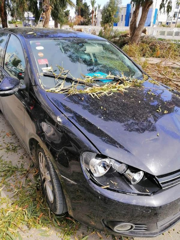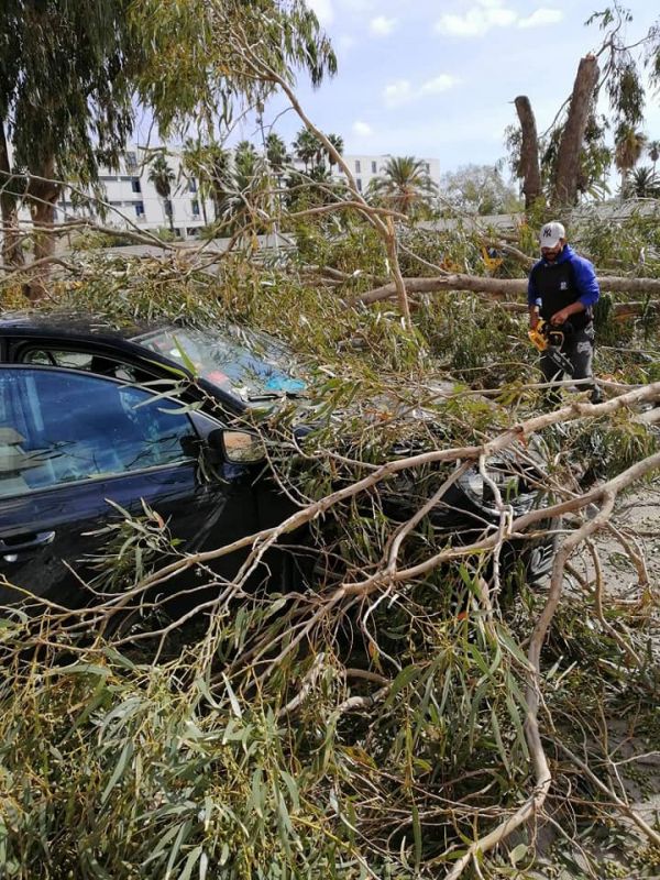 تعرضت مواطنة بمدينة المنستير إلى حادث خطير، تمثل في سقوط شجرة ضخمة على سيارتها أثناء قيادة السيارة رفقة عائلتها.
