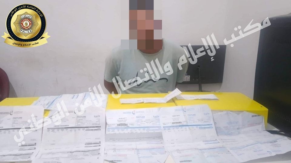 وتم تعميق التحريات الميدانية، وأمكن تحديد مكانه وضبطه في وقت وجيز، وبالتحري معه تبين أنه يعمل كرافع عداد متربص بشركة استغلال وتوزيع المياه وتم العثور بحوزته على عدد هام من فواتير إستهلاك الكهرباء والغاز حديثة الإصدار.