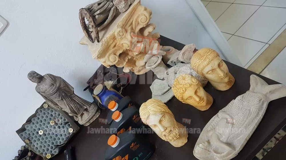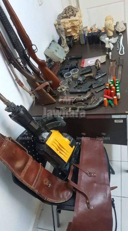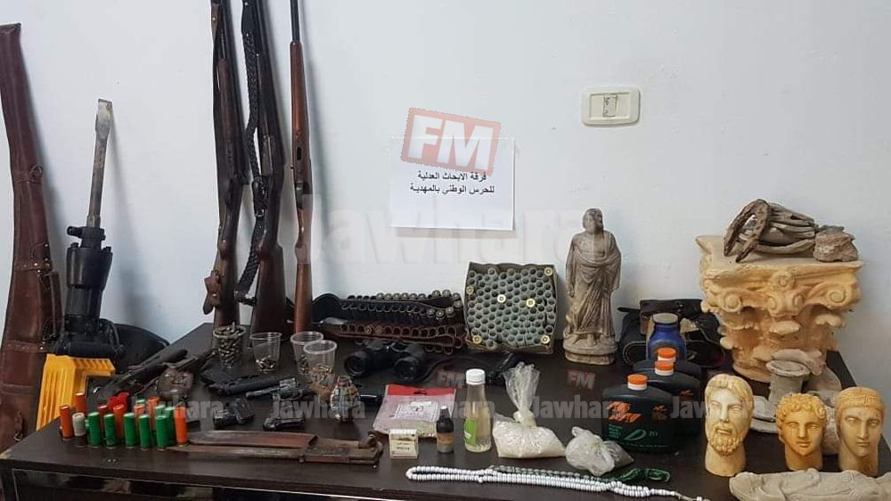 وبتفتيش منزله، أمكن العثور على قطع أثرية ومسدسات قديمة وذخيرة و3 بنادق صيد وبعض المواد المستعملة في استخراج الكنوز.