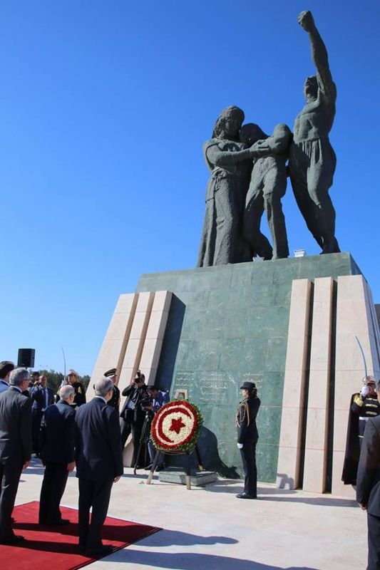 وأمام النصب التذكاري لشهداء أحداث 09 أفريل 1938، وضع رئيس الدولة إكليلا من الزهور وتلا فاتحة الكتاب ترحما على أرواحهم الزكيّة.