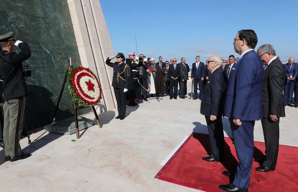 أشرف رئيس الجمهورية الباجي قايد السبسي صباح يوم الاثنين 09 أفريل 2018 بروضة الشهداء بالسيجومي على موكب إحياء الذكرى 80 لعيد الشهداء، بحسب بلاغ رئاسة الجمهورية.