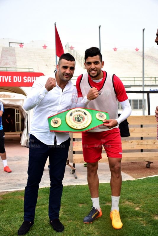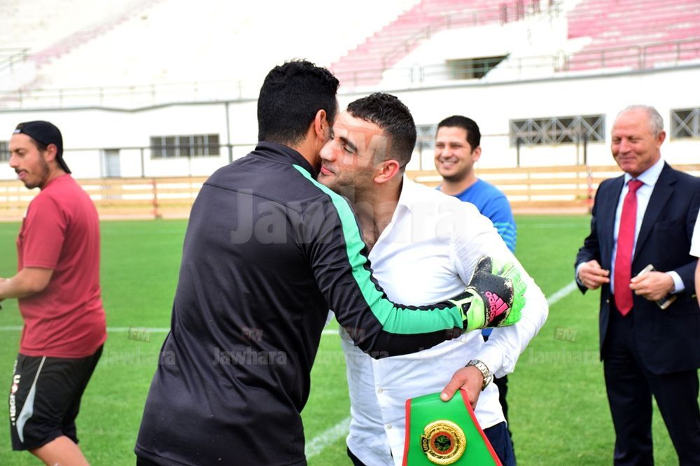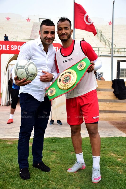 كرمت الهيئة المديرة للنجم الرياضي الساحلي اليوم البطل العالمي في رياضة الملاكمة معز فحيمة و ذلك قبل الحصة التدريبية التي دارت اليوم في الملعب الأولمبي بسوسة بحضور الإطار الفني و اللاعبين و أعضاء الهيئة المديرة للفريق.
