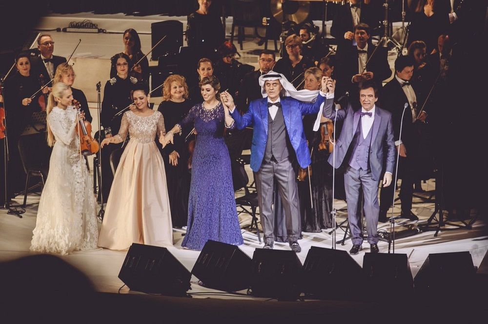وشاركت عازفة الكمان أنستازيا بتريشاك مع النجم الإيطالي في فقرات عديدة من الحفل الذي شهد إقبالا جماهيريا هاما.