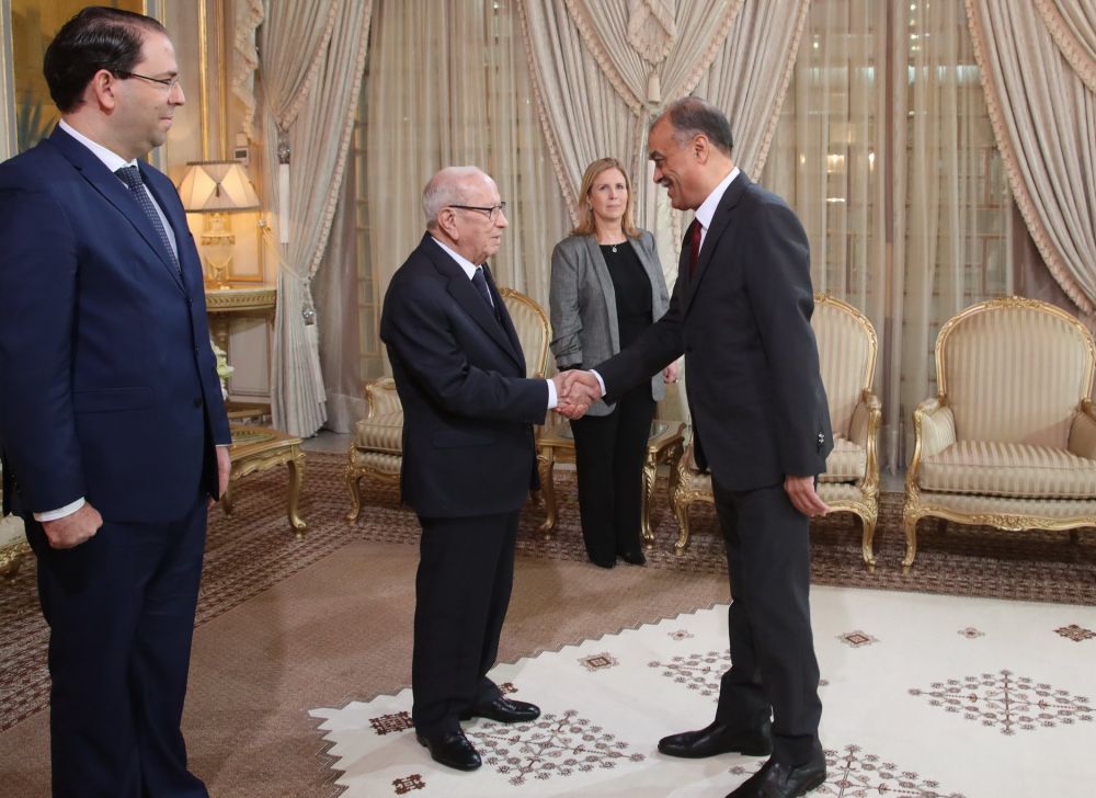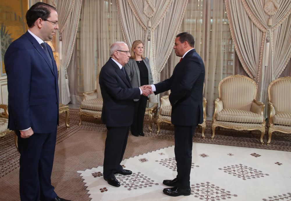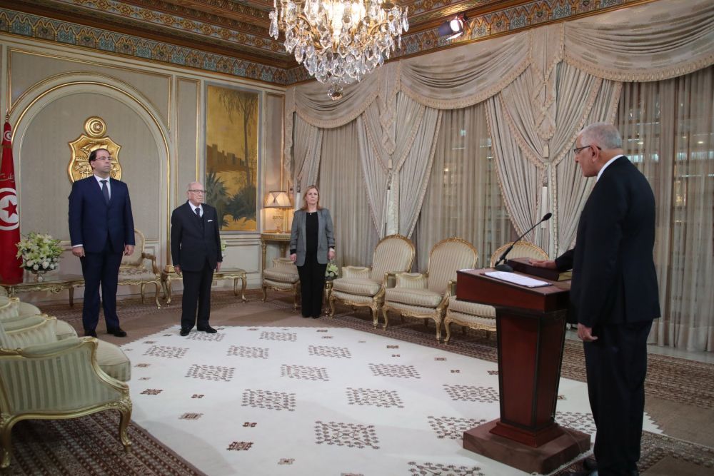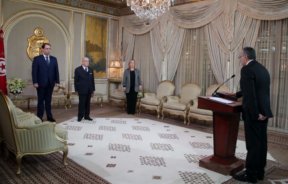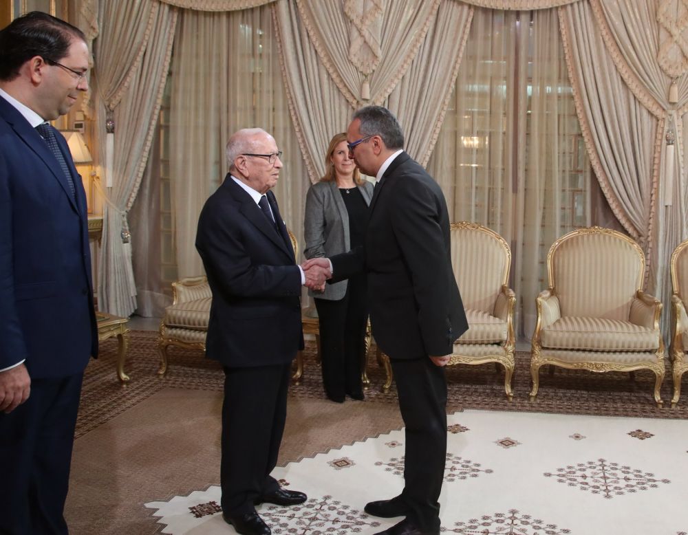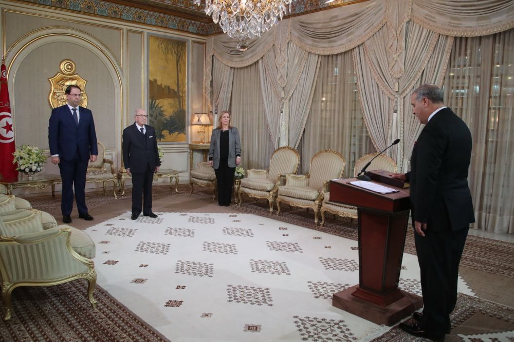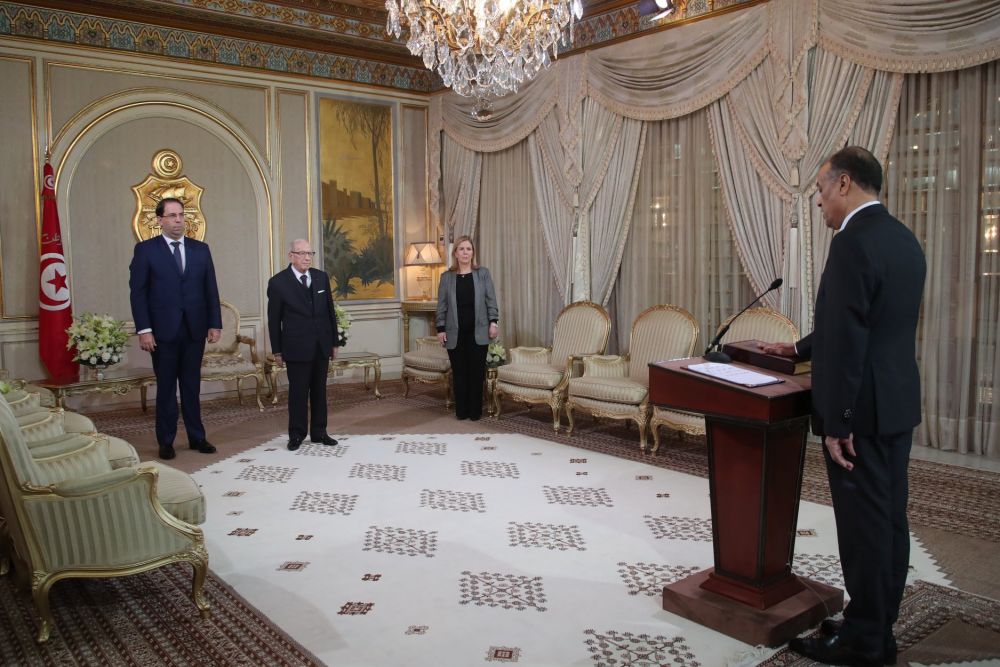 أشرف رئيس الجمهورية الباجي قايد السبسي، يوم الأربعاء 14 نوفمبر 2018 بقصر قرطاج على موكب أداء اليمين الدستورية لأعضاء الحكومة الجدد وهم: