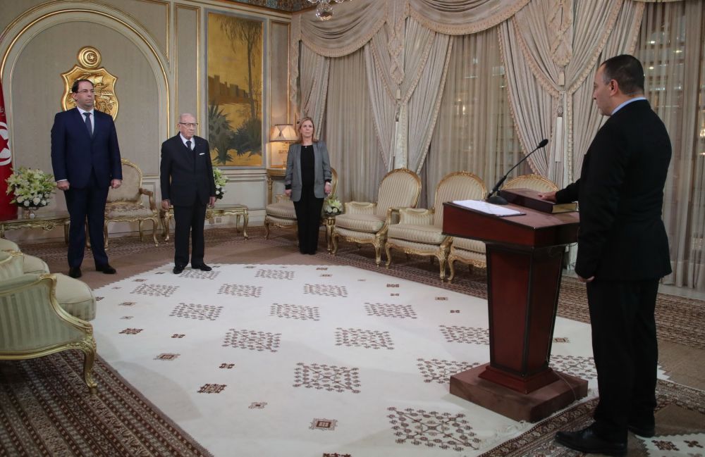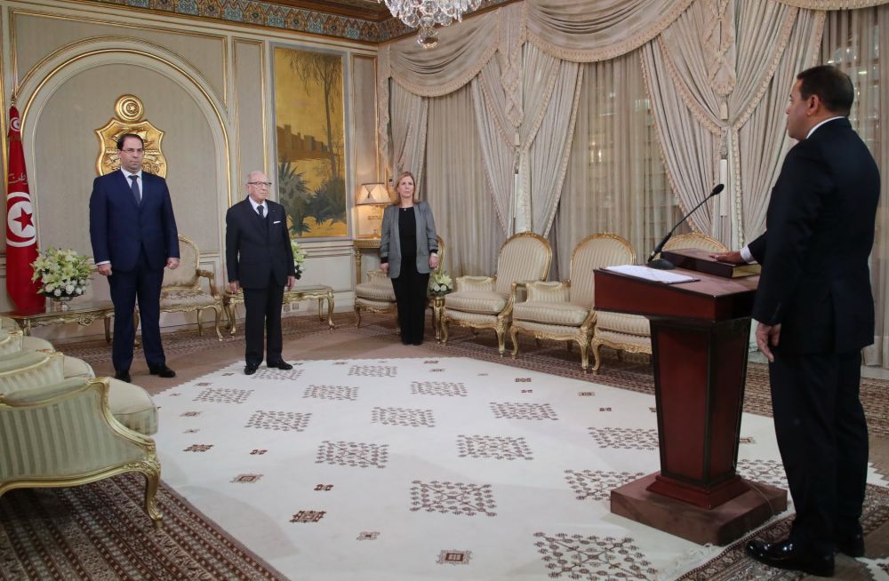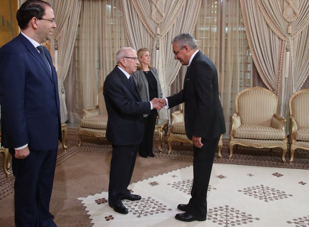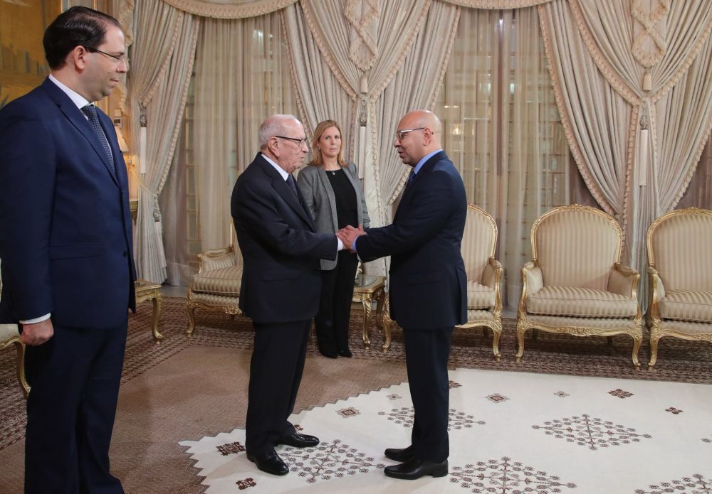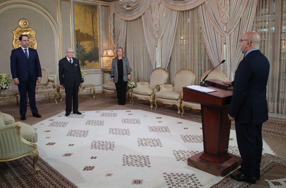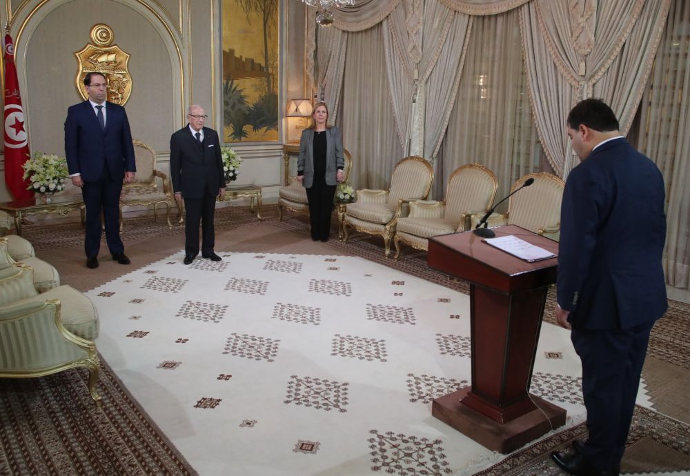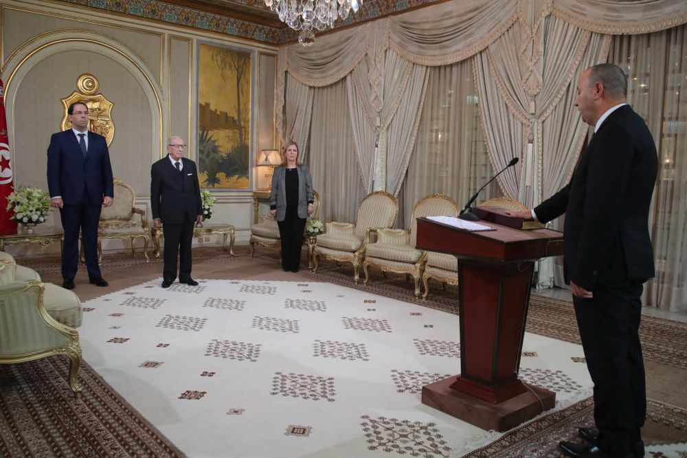 أشرف رئيس الجمهورية الباجي قايد السبسي، يوم الأربعاء 14 نوفمبر 2018 بقصر قرطاج على موكب أداء اليمين الدستورية لأعضاء الحكومة الجدد وهم: