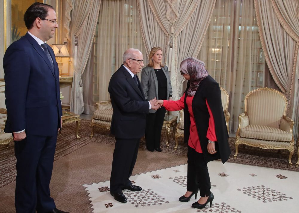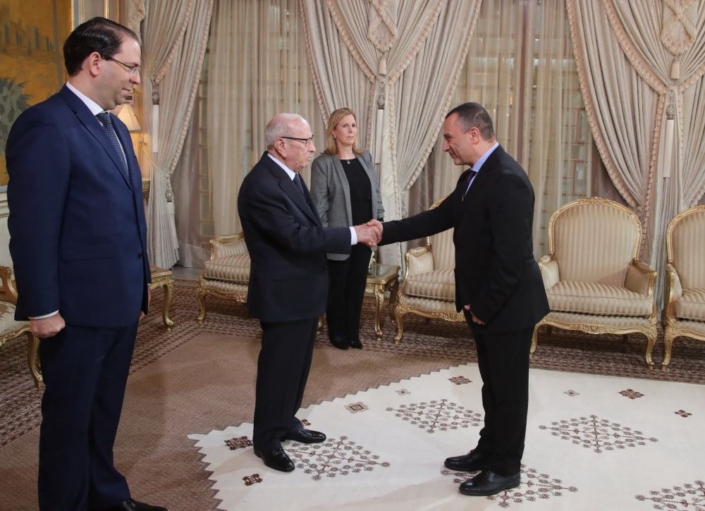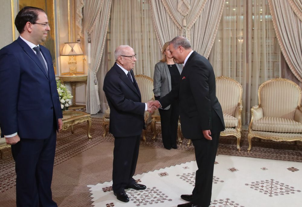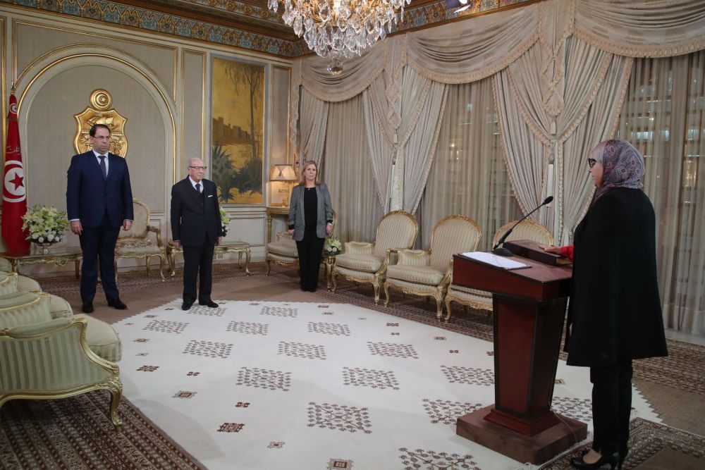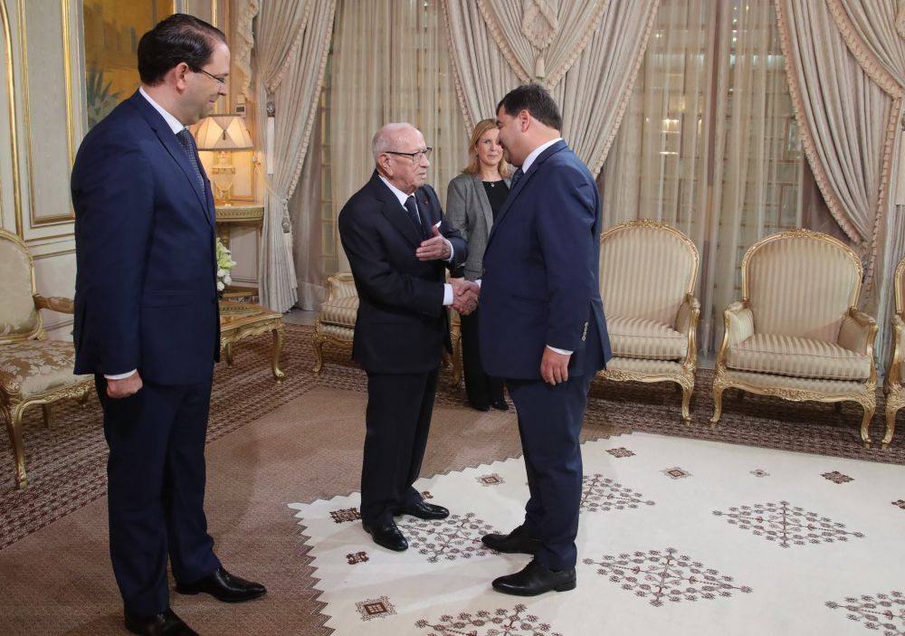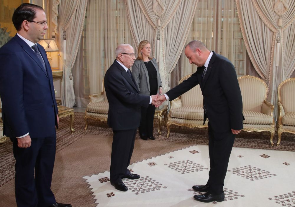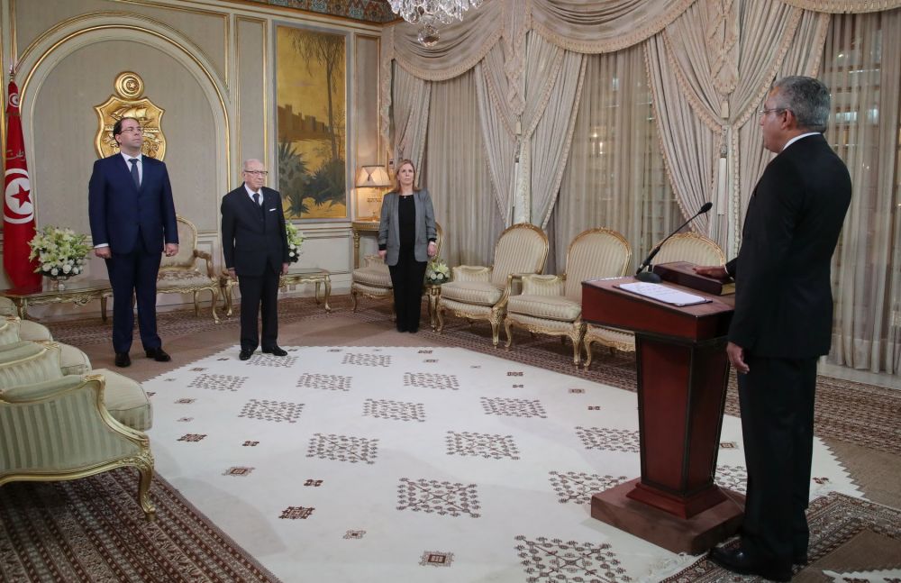 أشرف رئيس الجمهورية الباجي قايد السبسي، يوم الأربعاء 14 نوفمبر 2018 بقصر قرطاج على موكب أداء اليمين الدستورية لأعضاء الحكومة الجدد وهم: