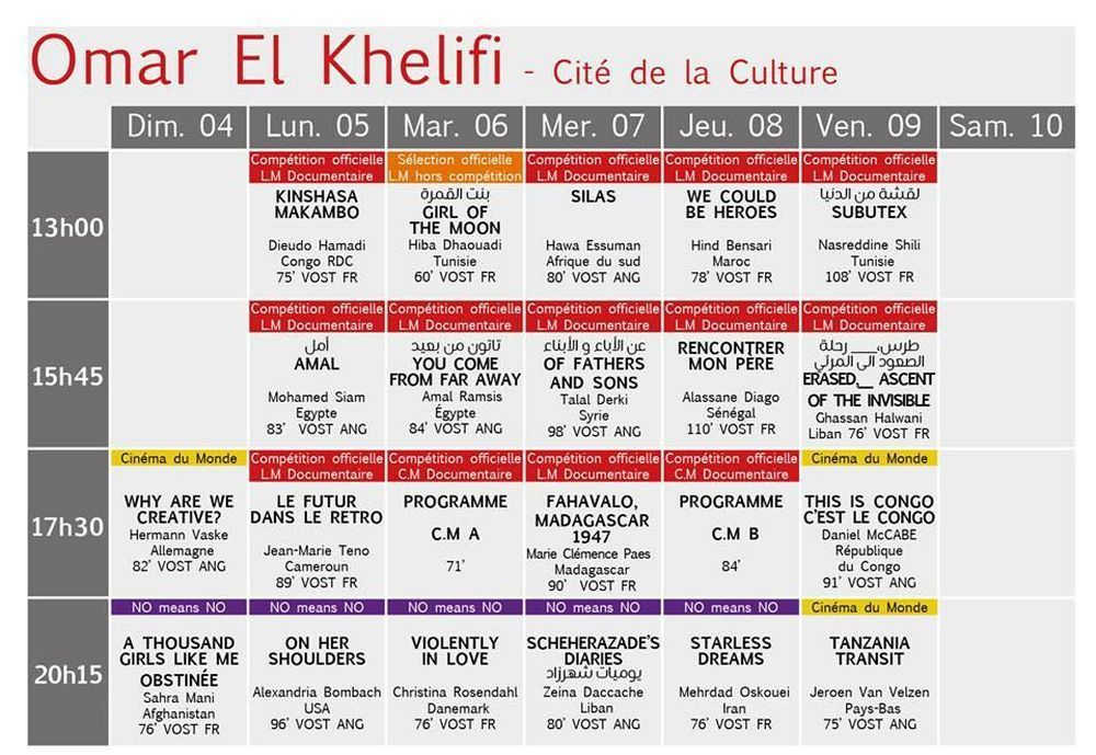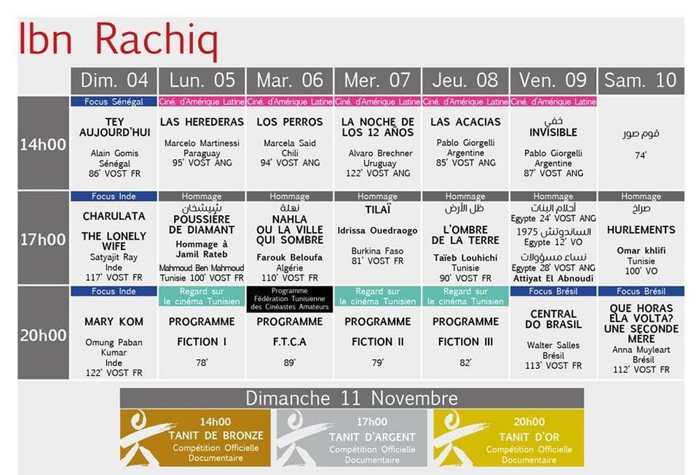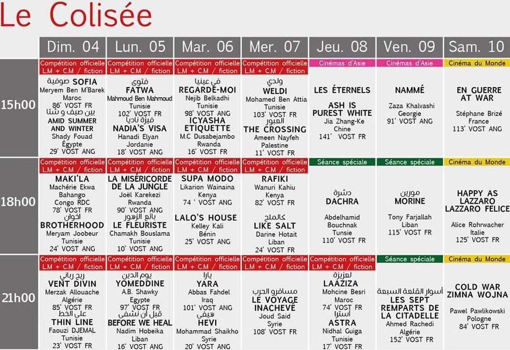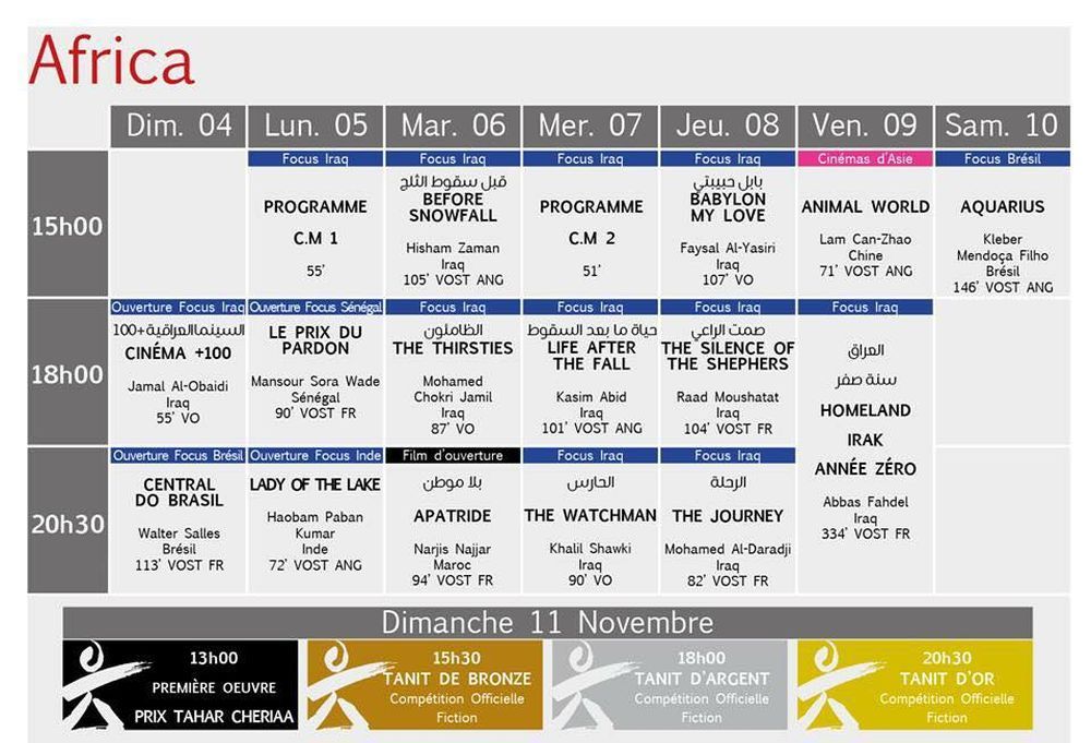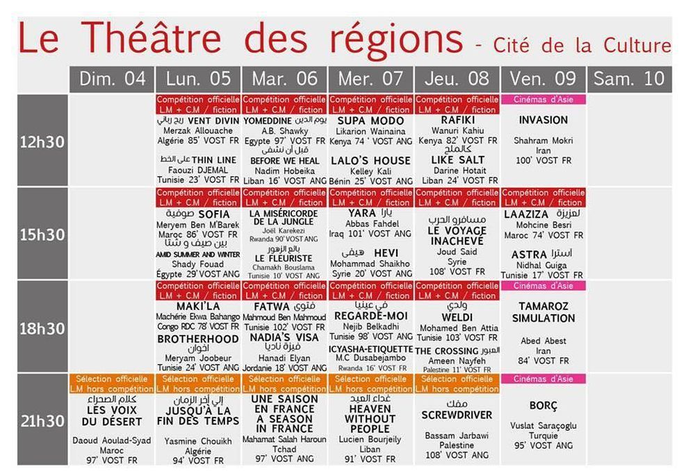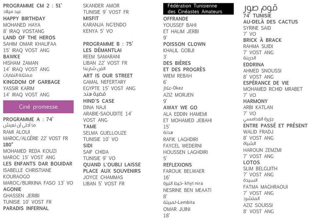 البرمجة الكاملة لأيام قرطاج السينمائية:
