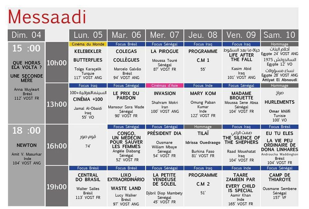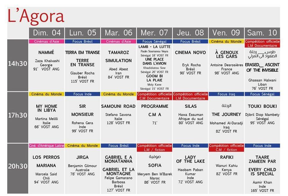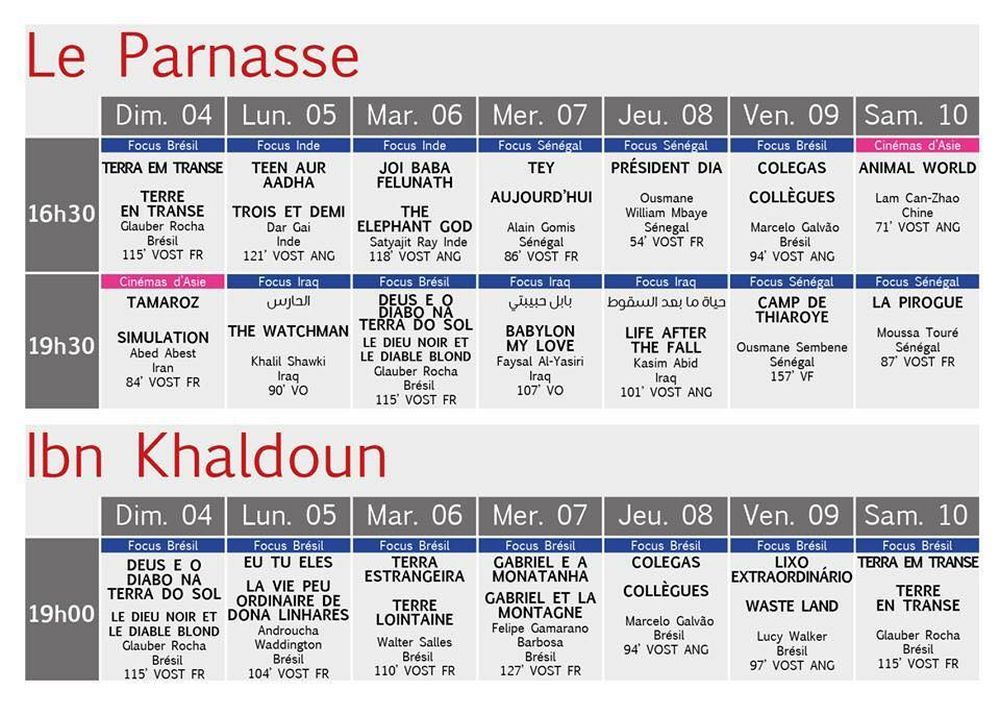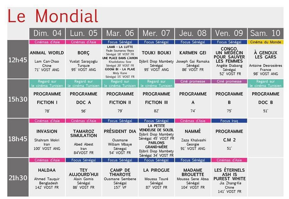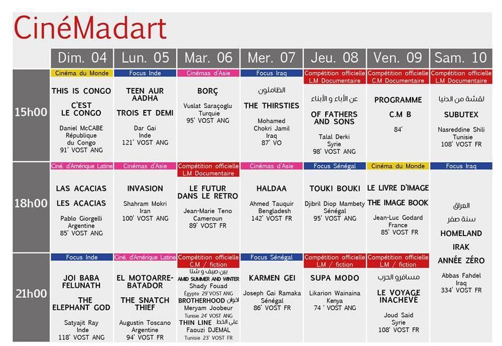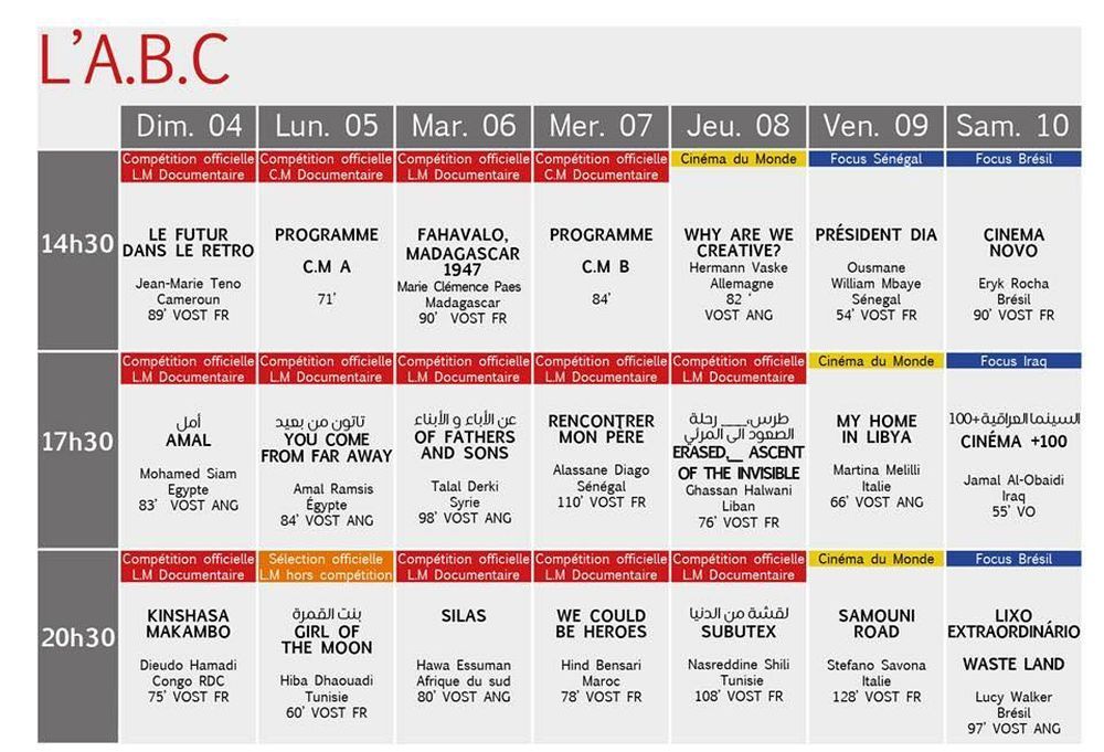 البرمجة الكاملة لأيام قرطاج السينمائية: