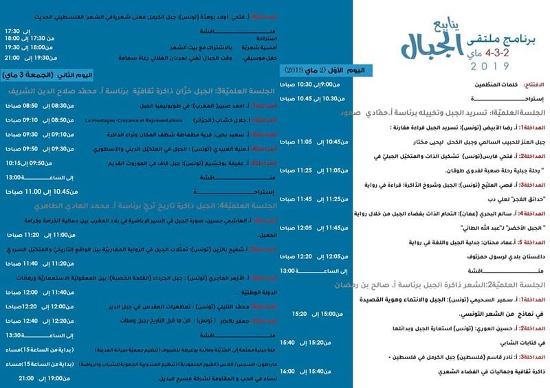 "عديدة هي موارد الجبل : امتداد وتاريخ ومقاومة ورمزية وجمال وخيال وترحال واسرار.لذلك لا يوجد أجمل من ينابيع الجبال عنوانا لتظاهرة ادبية تستمد من الجبل والادب المتعة والافادة لذلك نرجو ان تكون هذه الينابيع سبيل رحلة للتواصل والاخوة والمحبة واكتشاف اغوار ادب اتخذ من الجبل وسائل للنظر في جمالية الجبل واكتشاف اسراره ورؤياه ورؤية المهتمين بالنبش في كنهه كل الشكر و التقدير لهيئة ابت الا ان تواصل معنا مسيرة من خمس دورات متتالية لينابيع الابداع غصنا فيها في خبايا الأدب و الفنون لنواصل مسير البحث الْيَوْمَ في رحلة جديدة تحمل عبق الجبال .."
