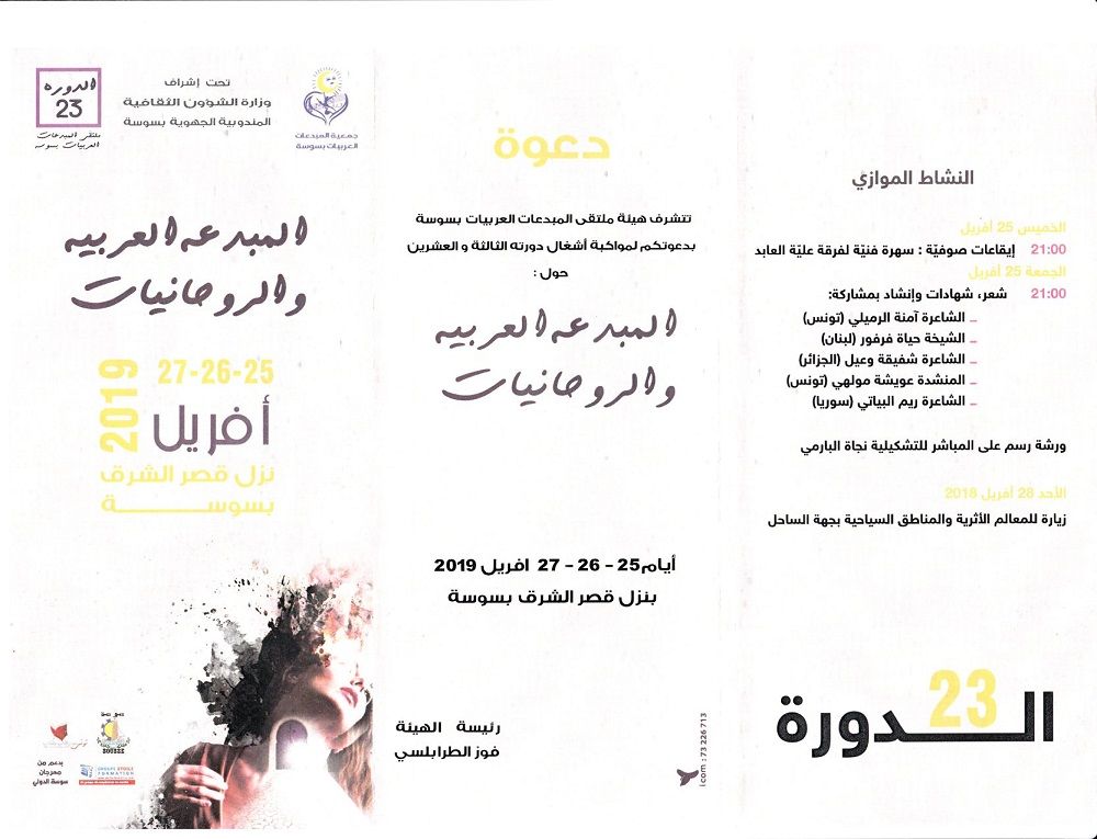 اليوم : افتتاح الدورة 23 ملتقى المبدعات العربيات بسوسة