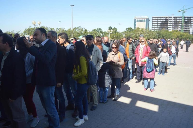 ووقف الزوار في طوابير طويلة ومتراصّة أمام مدخل قصر المعارض بالكرم. كما تمّ استقبالهم في البهو الرئيسي بعروض فلكلورية راقصة أثثتها فرق من دول فلسطين وبيلاروسيا وأندونيسيا جلبت إليها أنظار الجمهور لاسيّما من فئة الأطفال.