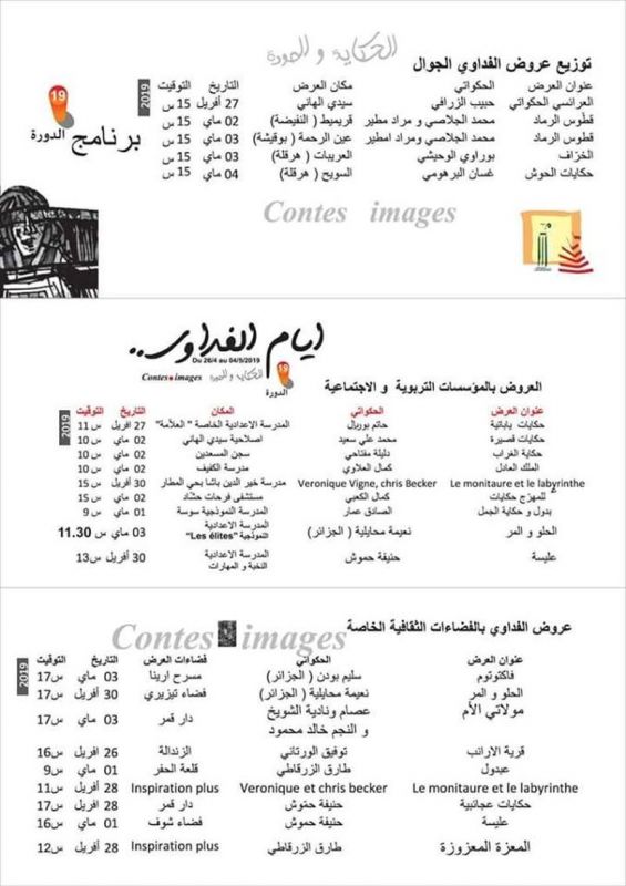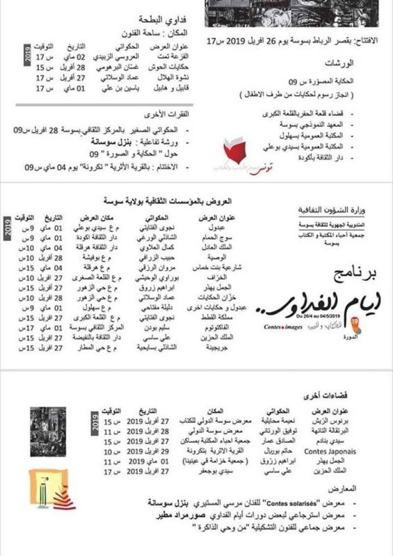 تفتتح اليوم الدورة 19 من مهرجان أيام الفداوي بسوسة والتي تتواصل فعالياتها إلى غاية يوم 4 ماي 2019 تحت شعار "الحكاية والصورة".