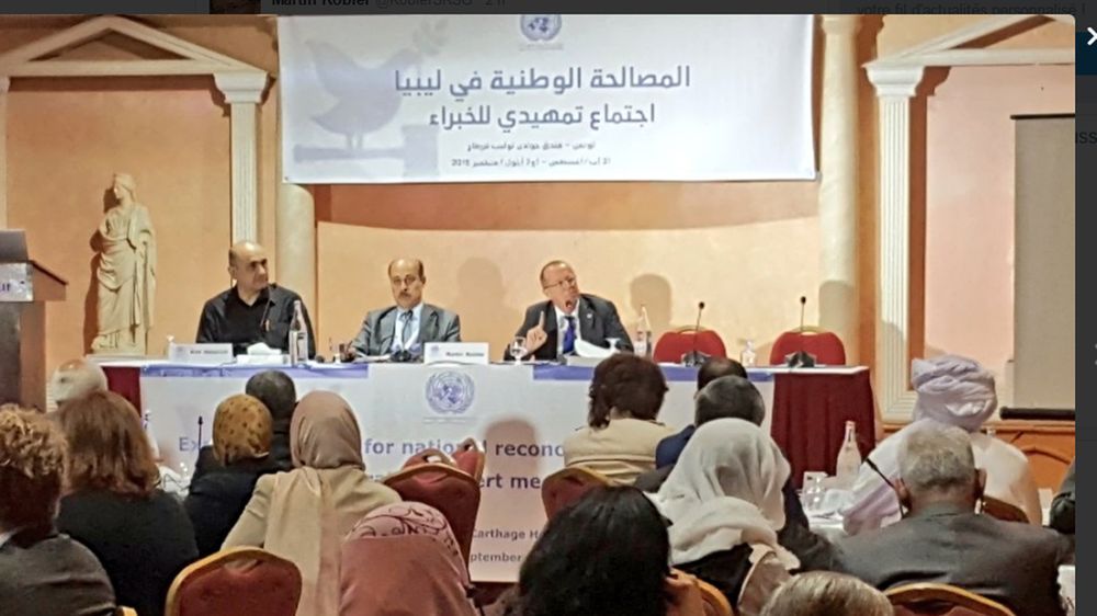 نشر مبعوث الأمم المتحدة في ليبيا مارتن كوبلر على تويتر صورا لفصائل من المعارضة الليبية وخبراء دوليين المجتمعين حاليا في تونس تحت شعار المصالحة الوطنية في ليبيا.
