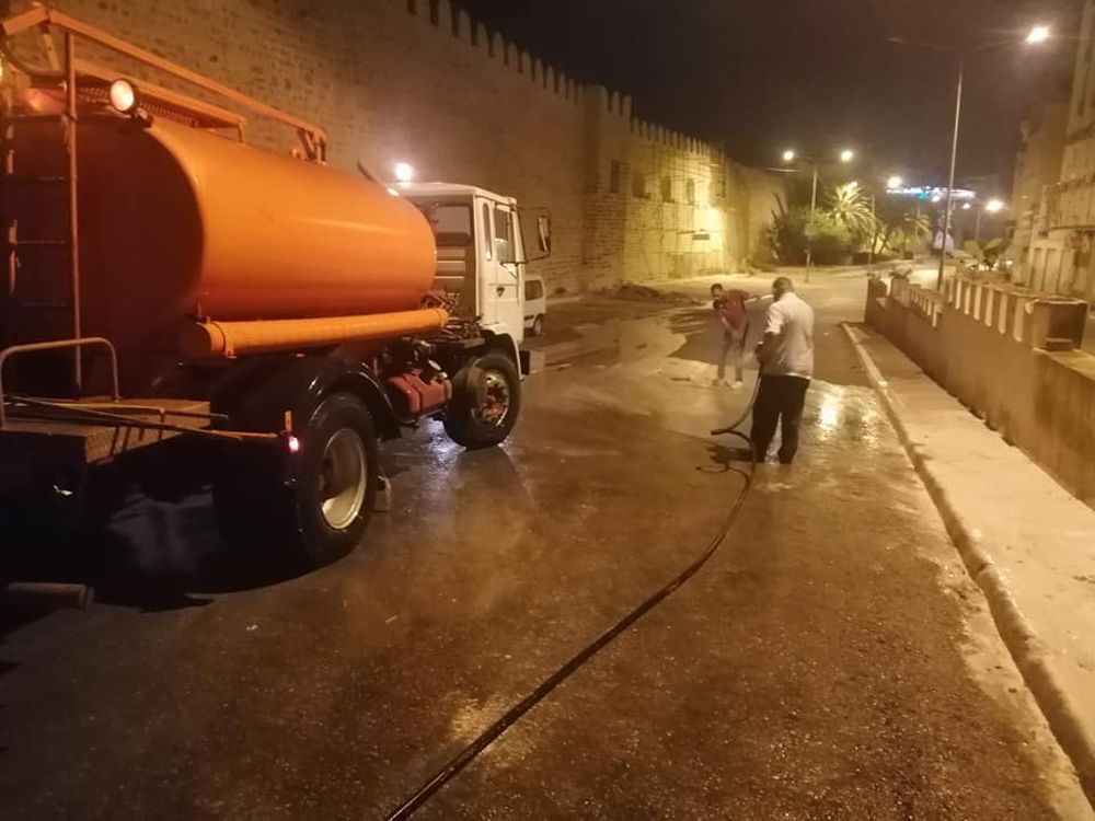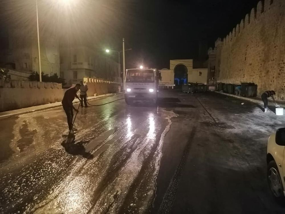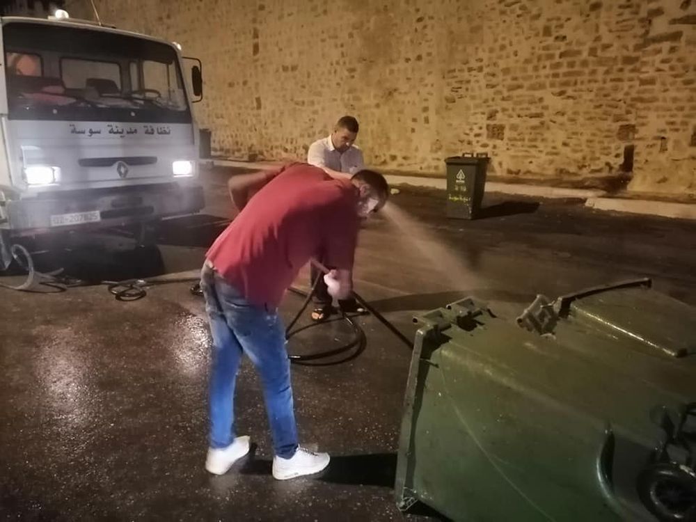 قام أعوان بلدية سوسة مساء أمس الأحد والذي يصادف أول أيام عيد الأضحى، بتنظيف المدينة العتيقة باستعمال الماء وغسل الحاويات و دهن الأرصفة، استعدادا لعودة الحركة لأكثر المناطق حركة بمدينة سوسة.