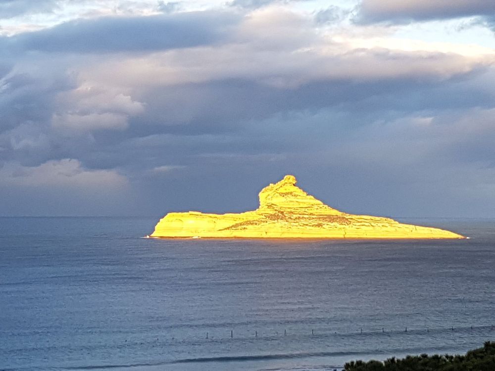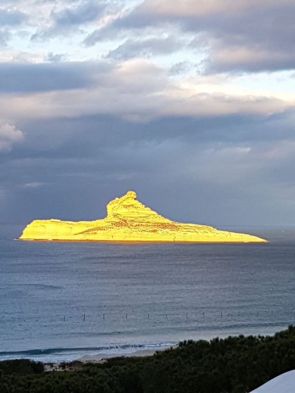 وبدت الجزيرة الصغيرة وكأنها توشّحت ذهبا بفعل أشعة الشمس الذهبية التي غطت الجزيرة بشكل نادر لوقت وجيز وجعلت منها لوحة فنية رائعة الجمال رسمتها الطبيعة باتقان شديد.