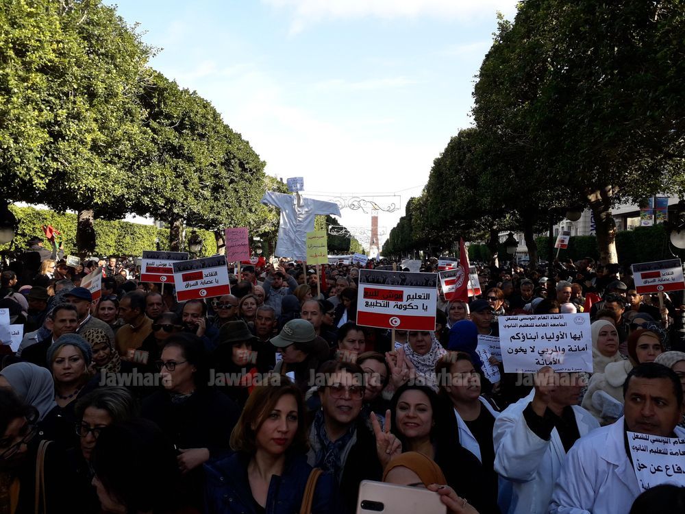 شارك اليوم الأربعاء عدد كبير من أساتذة التعليم الثانوي في مسيرة احتجاجية تم تنظيمها في شارع الحبيب بورقيبة وتقدمها الكاتب العام للجامعة العامة للتعليم الثانوي لسعد اليعقوبي.