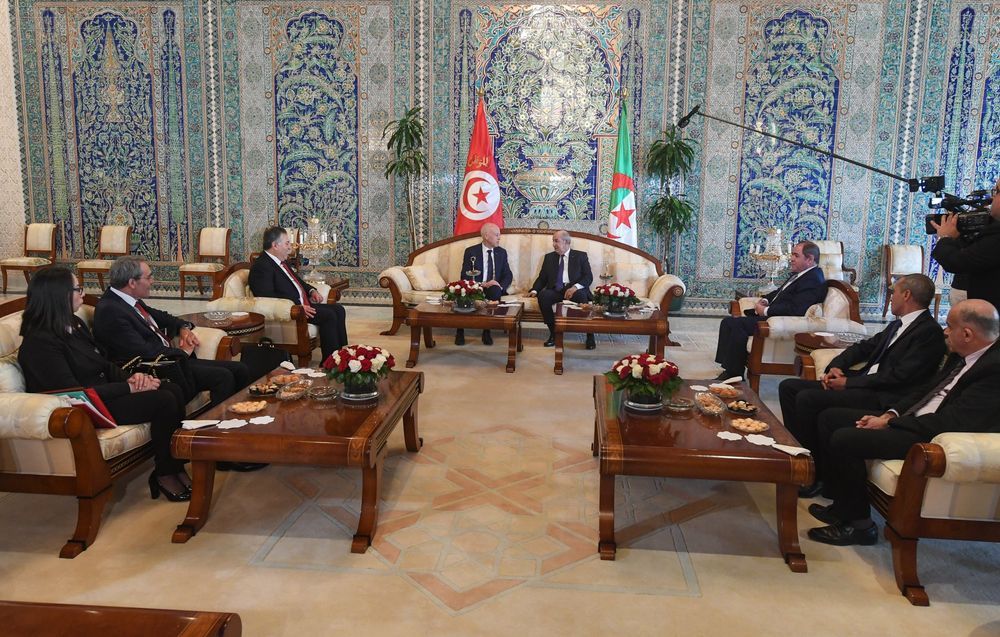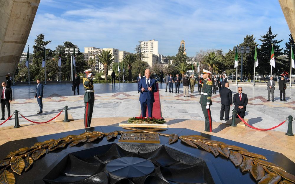ثم تحول رئيس الدولة الى القصر الرئاسي حيث أجرى محادثات ثنائية مع الرئيس الجزائري عبد المجيد تبون .